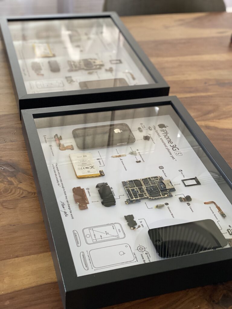 I don’t know about you, but I have a bunch of older iPhones lying around my house. Starting from the iPhone 2G all the way to the iPhone 6, I have all of them collecting dust in a drawer. Then I came across these commercial offers on Etsy or Xreart selling disassembled framed iPhones.
