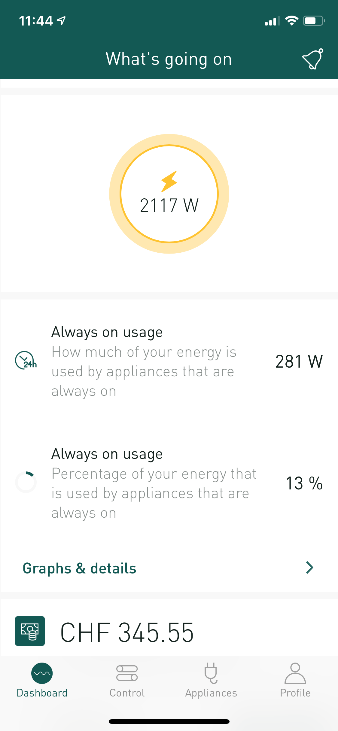 - When it works – it gives you a great overview of which appliances consume the most power
